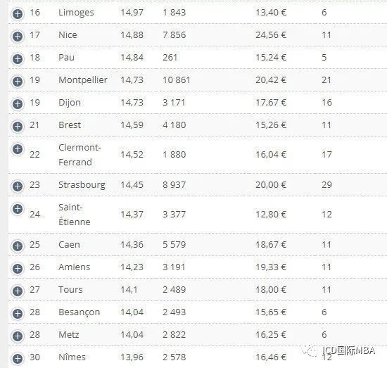 ICD校区所在的城市在法国最佳大学城排名